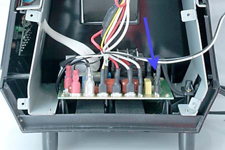 Looking down at the main board, the fuse is easily seen. Using a suitable tool, remove the fuse by pulling it straight up. When replacing the fuse in the fuse holder, be sure it is a tight fit. Carefully bend the holder's tabs together before inserting the fuse to assure a good connection. Reconnect the power cord if removed.