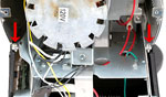 Stretch the sides apart a bit (indicated by the two arrows) to enable the cover to be lifted off the machine, being careful not to catch any wiring.. Take care not to scratch the cover and place it off to the side.